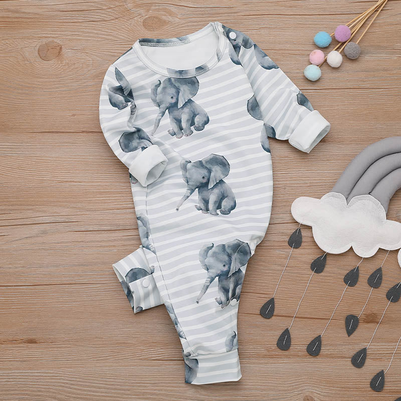 2Pcs/Set Autumn Baby Rompers Elephant Print Clothes Full Sleeve Baby Clothing Boy Cotton Newborn Jumpsuit