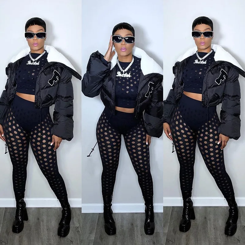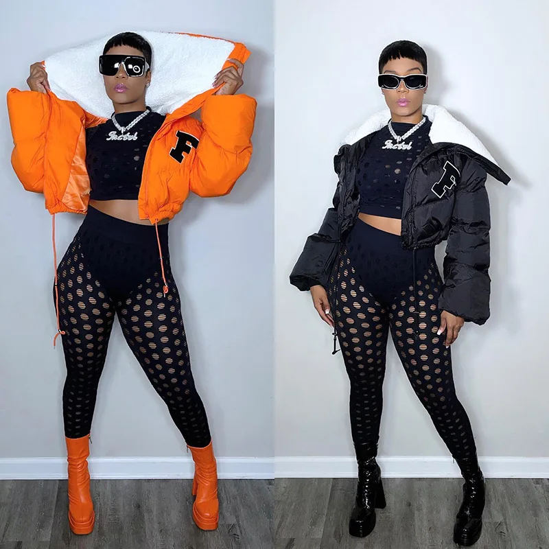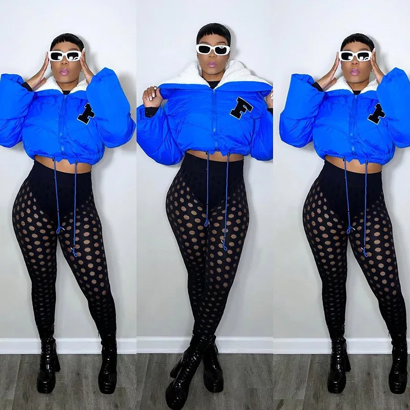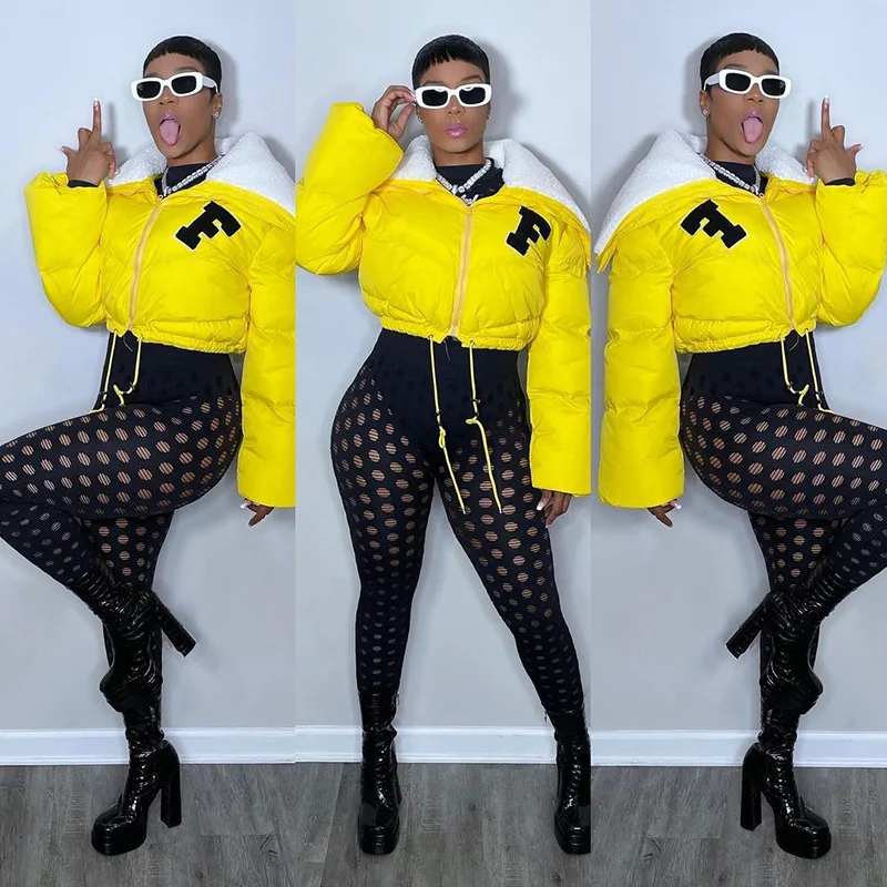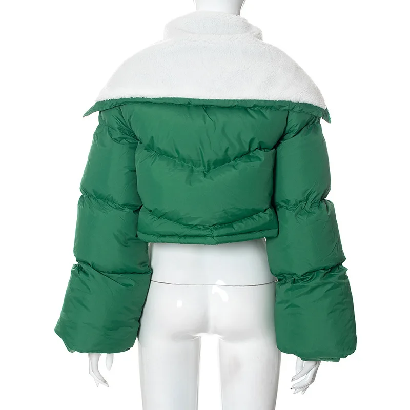 Bubble Puffer Coats Crop Jacket Fur Collar Casual Thick Warm Down Cropped Coat 2022 Women Y2K Clothes Streetwear Letter Jakcets