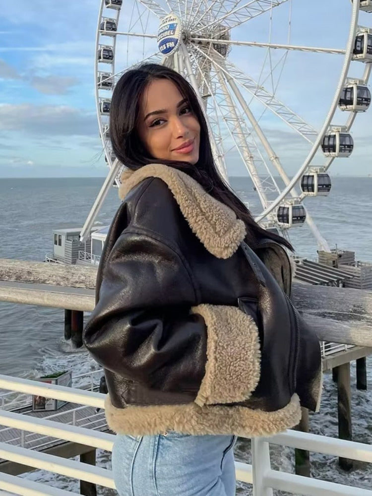 Cashmere Locomotive Jackets Women Loose Long Sleeve Zippers Thick Coats Autumn Winter Vintage Warm Female Short Jacket Coat