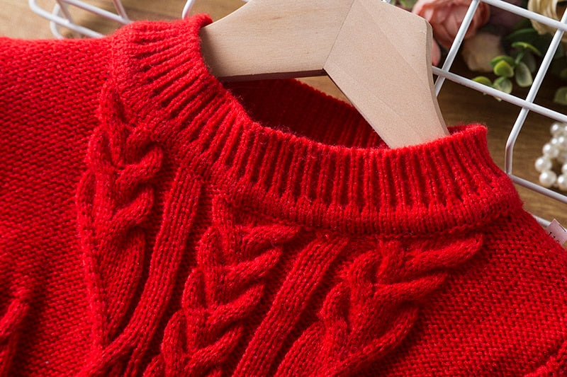 Girls Long Sleeve Knitting Dresses Autumn/Winter Warm Birthday Party Ruffle Princess Costume Kids Red Christmas Disfraz Vestido
