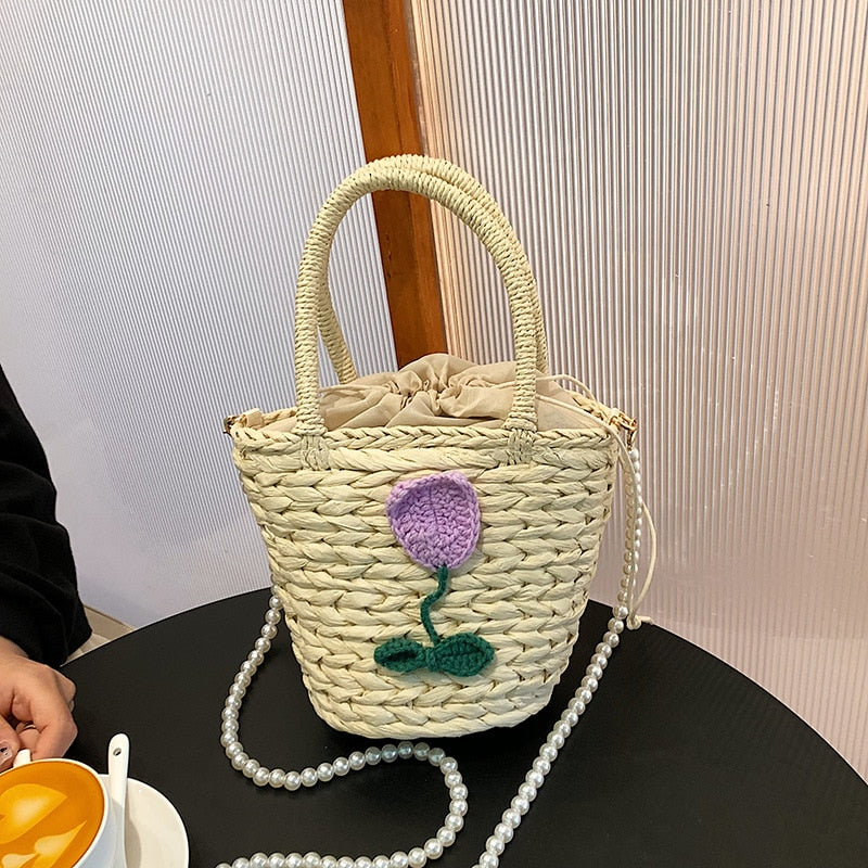 Handmade Woven Straw Bucket Bag Women Designer Handbags Bohemian Rattan Beach Bags Ins Chic Crossbody Shoulder Bag Shopper Tote