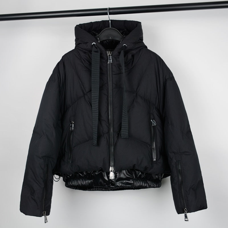 Janveny Real Raccoon Fur Hooded Women's Down Jacket 2021 Winter 90% Duck Down Coat Short Female Puffer Feather Parkas Outwear