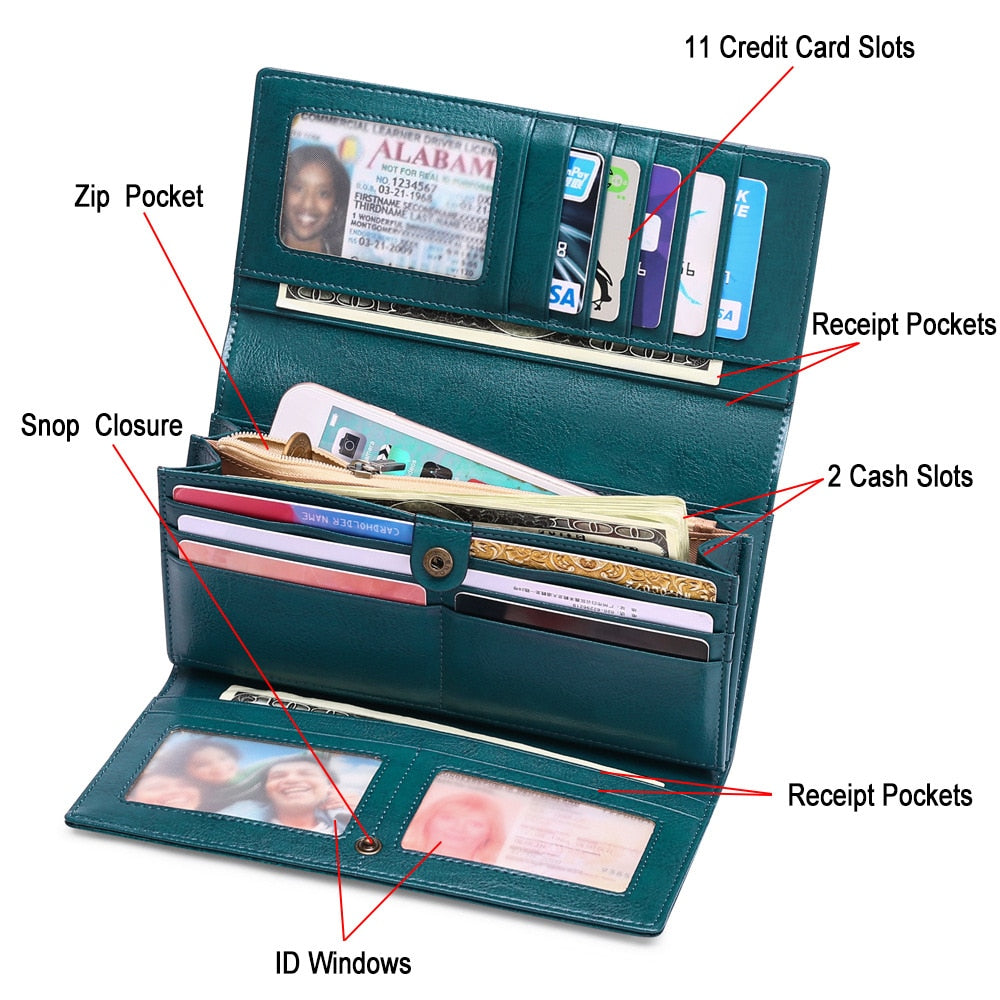 Long Purse Waxed Cowhide Purse Large Capacity Women's Clutch Luxury Designer Bags