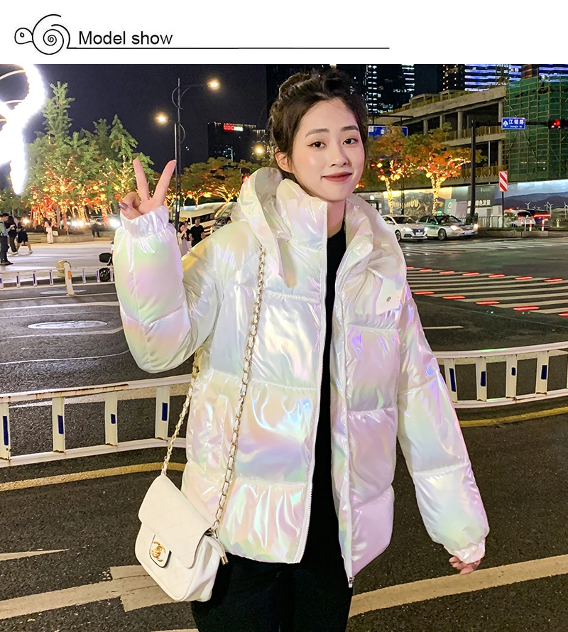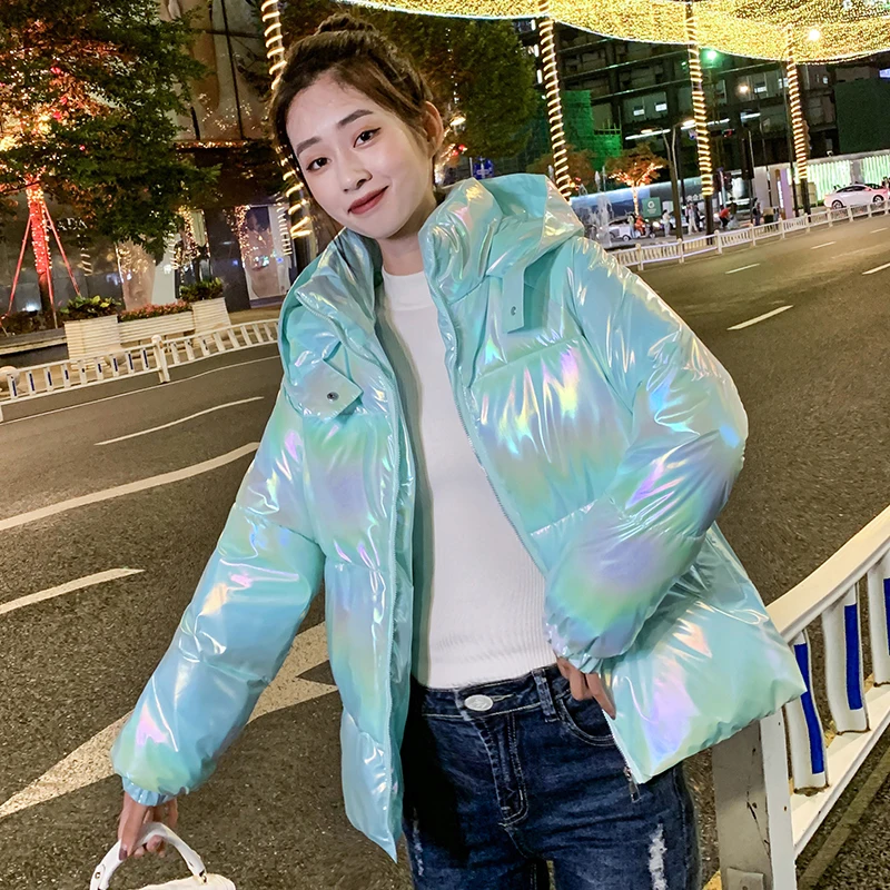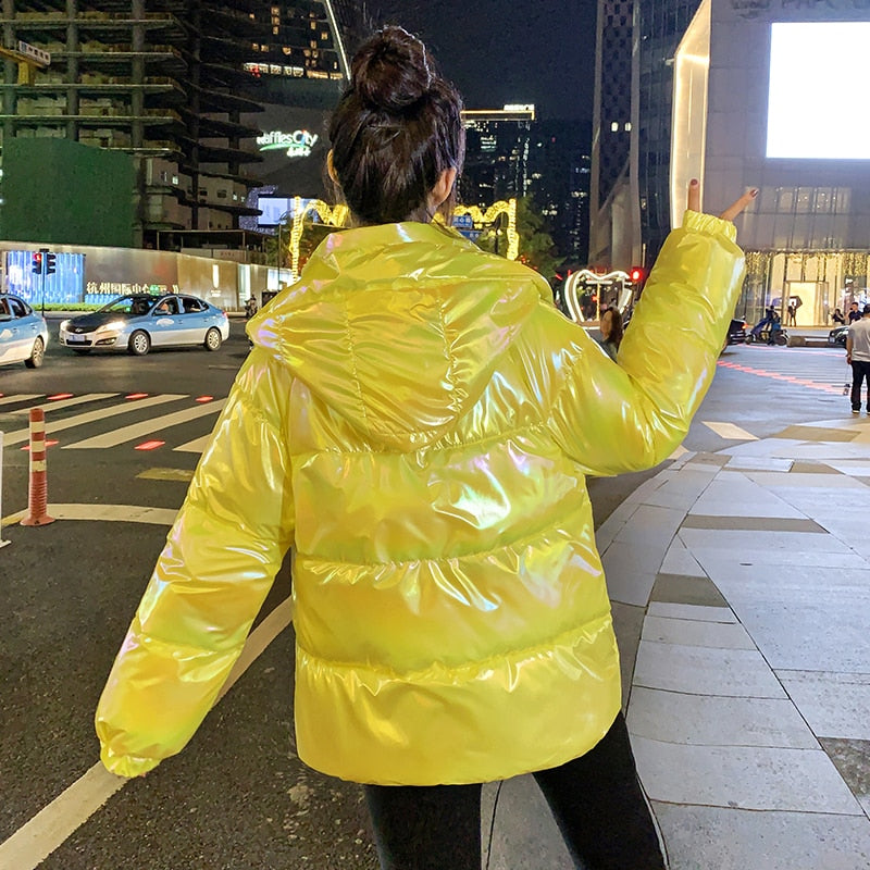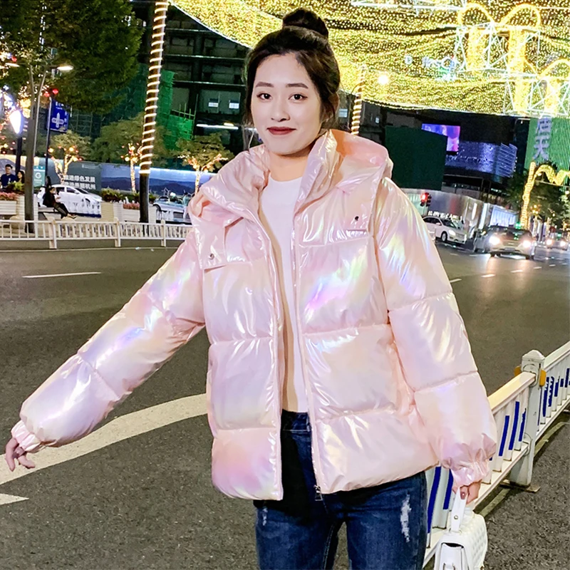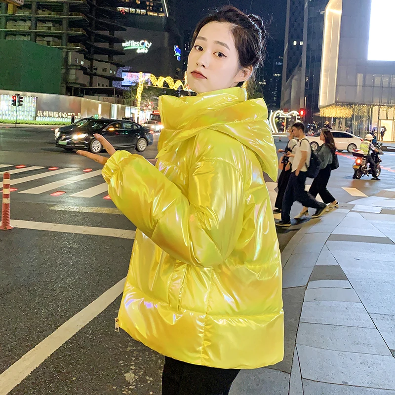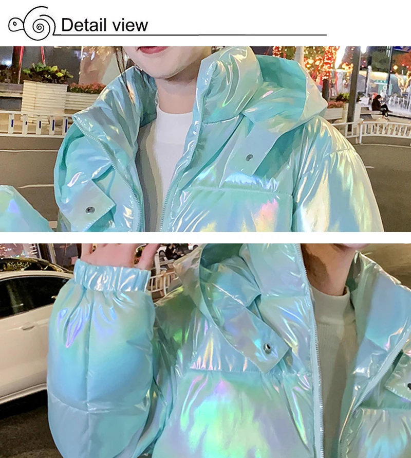 Puffer Coats Women's Shinny Hooded Long Sleeve Zipper Pockets Ladies Casual Thick Winter Jacket Cold Coat for Female 2021