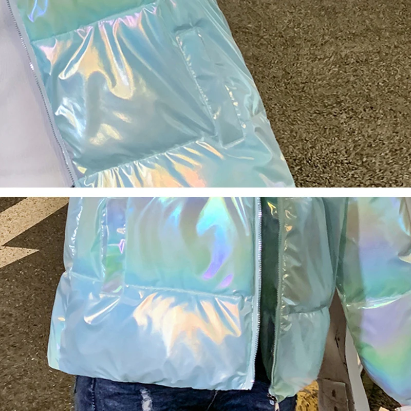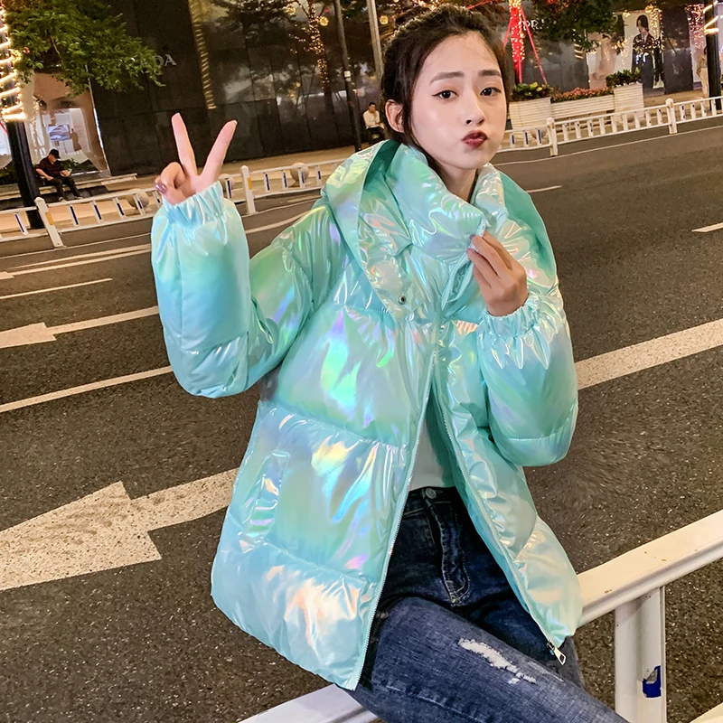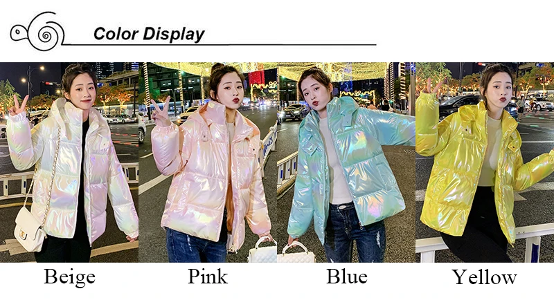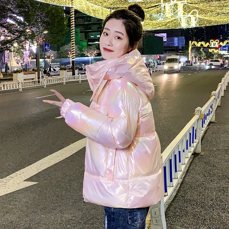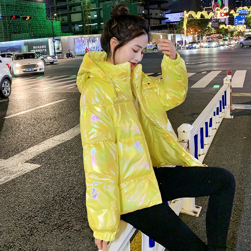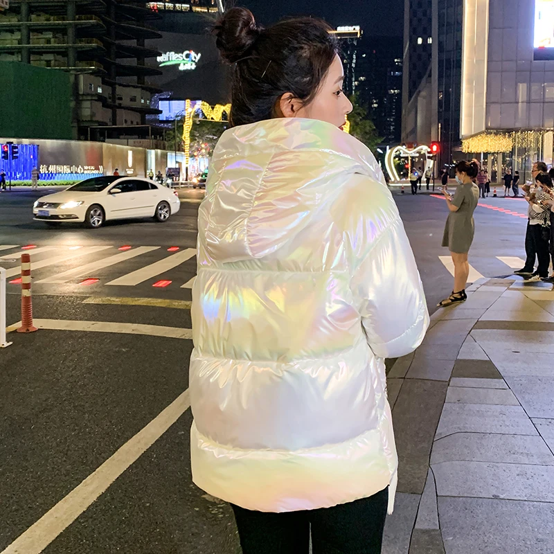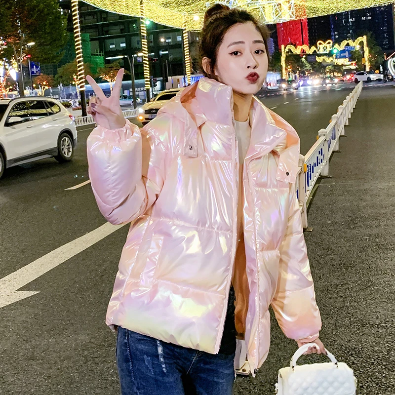 Puffer Coats Women's Shinny Hooded Long Sleeve Zipper Pockets Ladies Casual Thick Winter Jacket Cold Coat for Female 2021