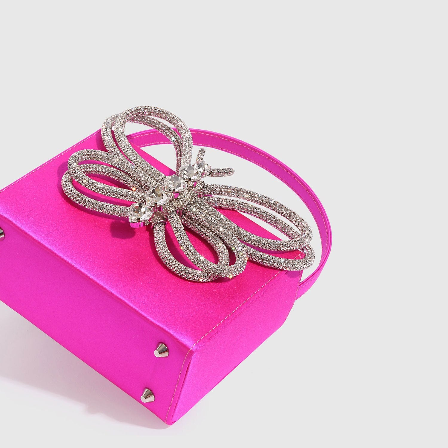 Rhinestones Butterfly Bow Evening Bag Women Designer Vintage Party Small Flap Box Purse Totes Handbag Hot Pink Black Blue