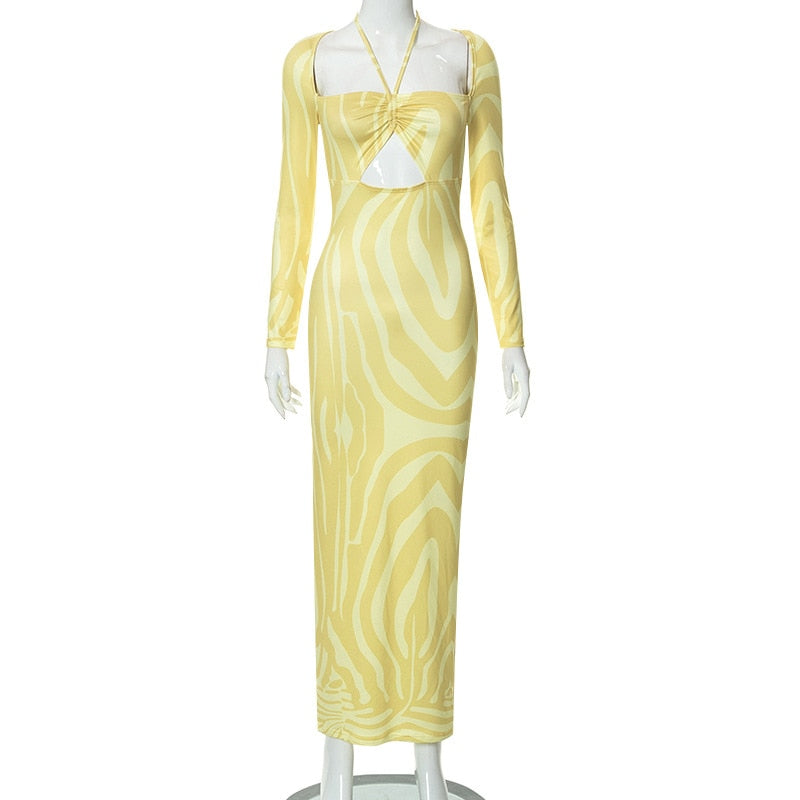 Sexy Halter Lace Up Ruched Long Sleeve Bodycon