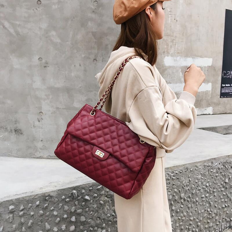 Shoulder Bags Handle Bag For Women Chain PU Leather Handbags Chic Lingge Chain Female Bag