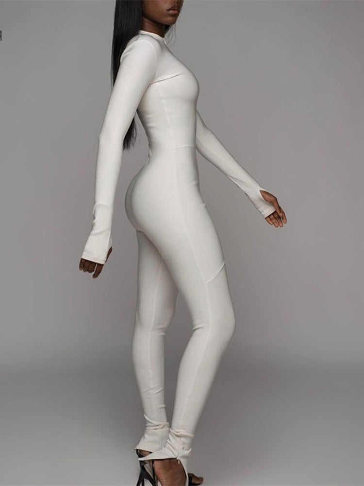 Sisterlinda White Rompers Womens Jumpsuits Elegant Long Sleeve Overalls Night Party Zipper Playsuits Slim Outifts Streetwear2022