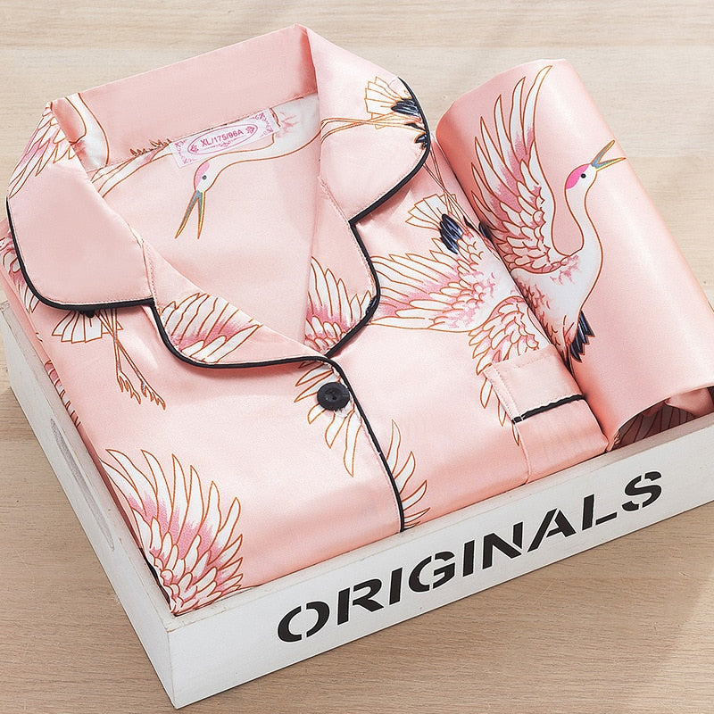 Sleepwear Women & Faux Silk Satin Pajamas Set Nightwear Long Sleeve Pajamas Home Clothes Set For women Sleeping Shirt Home Wear