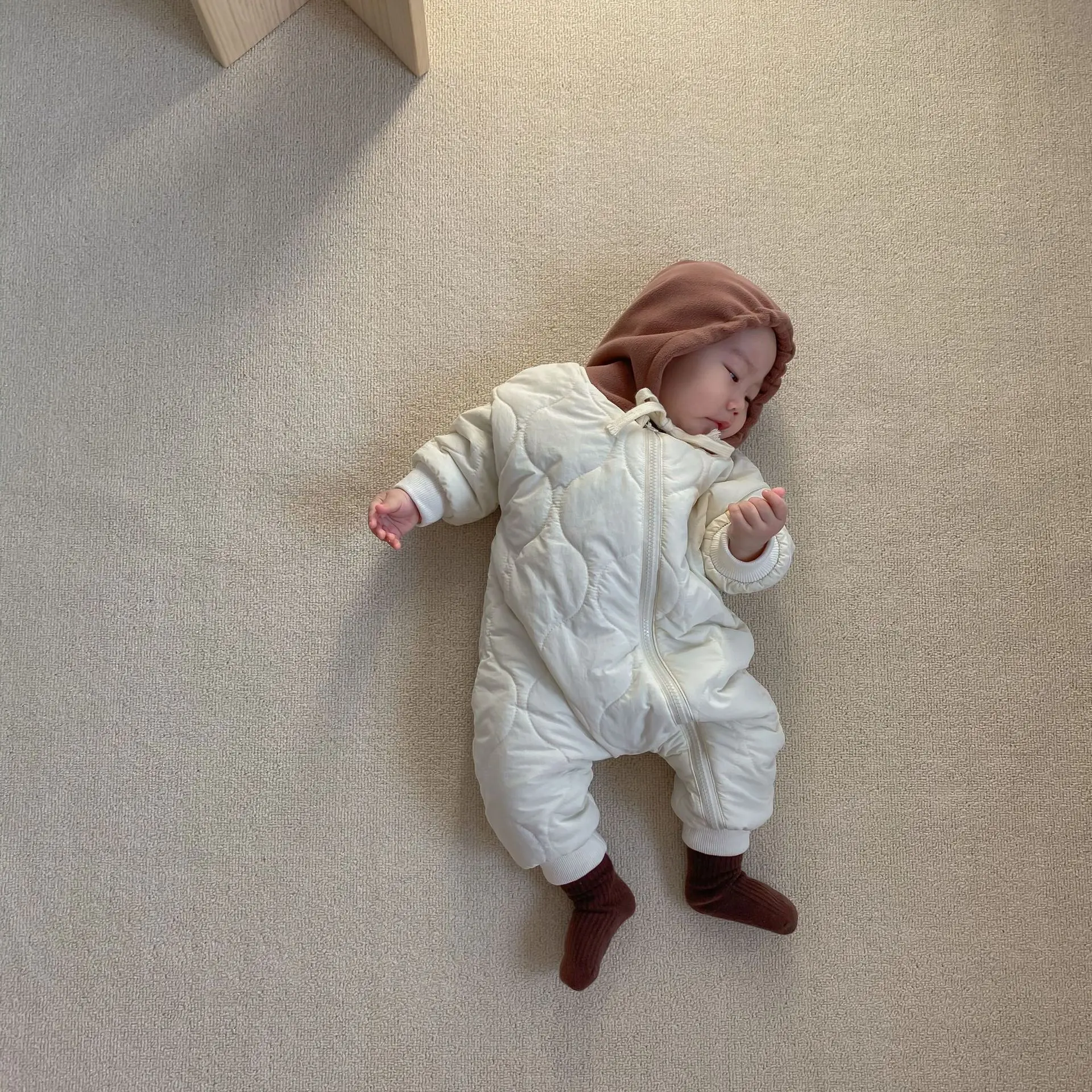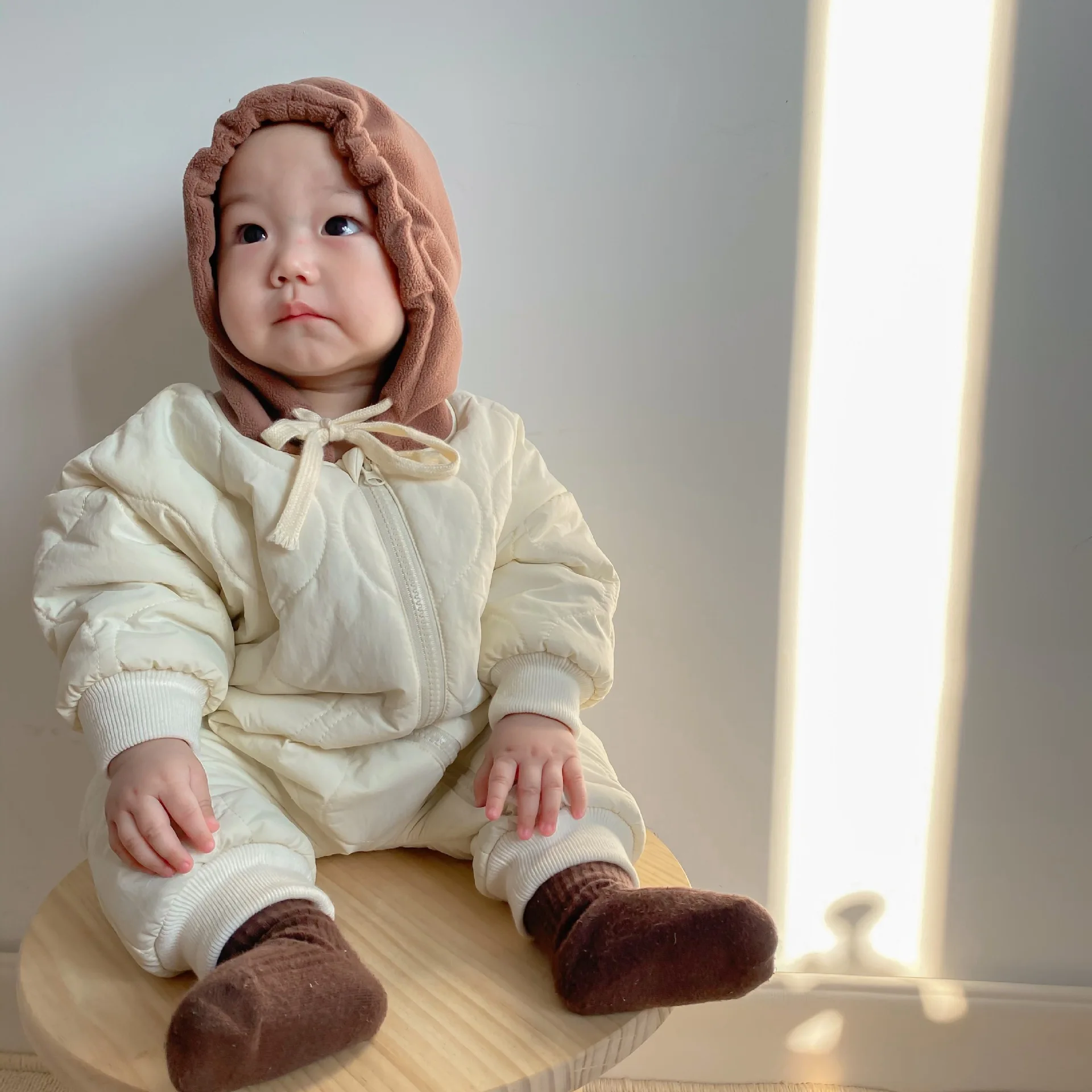 Toddler Baby Down Cotton Solid Rompers Newborn Baby Boy Girl Hooded Clothes Snow Suit Winter Jumpsuit Thicken Warm Outwear 0-24m