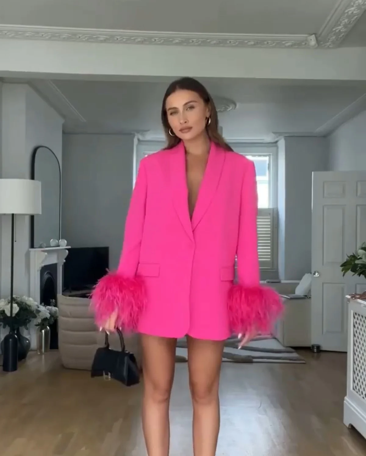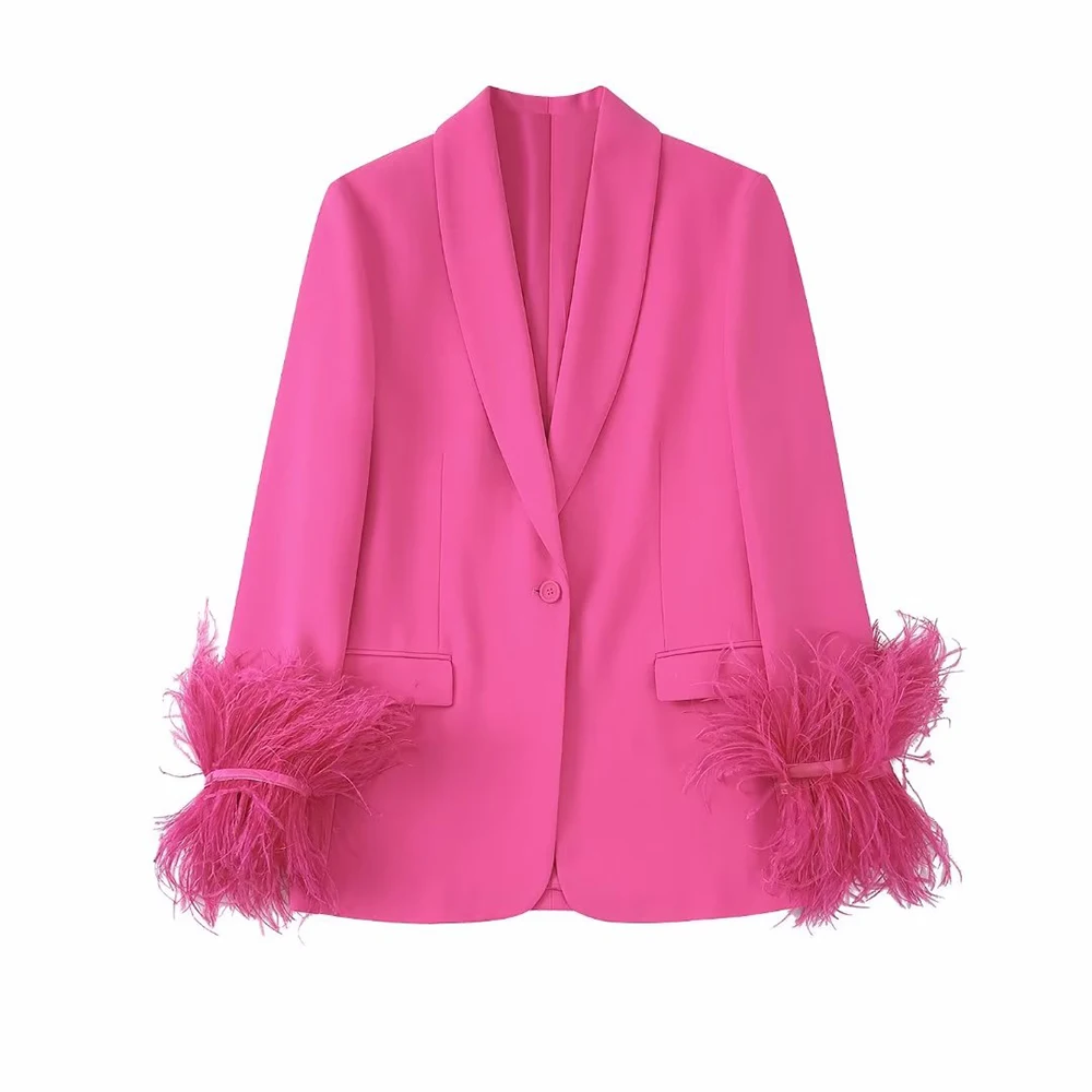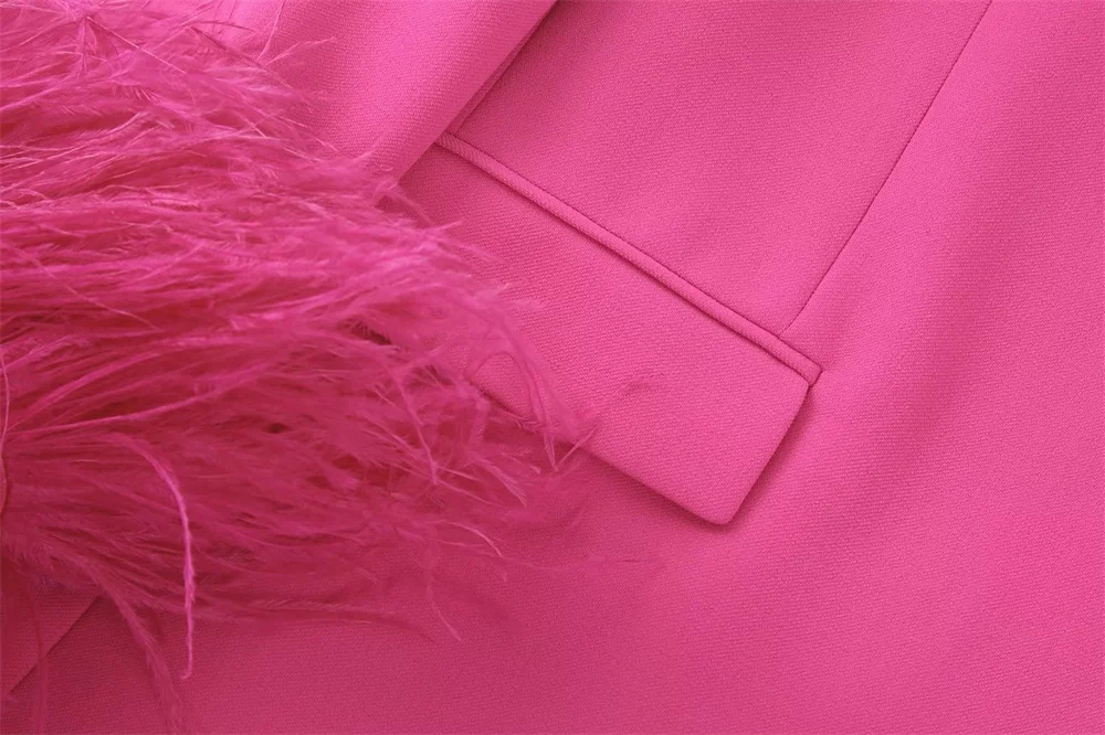 Women's Coats Feather Decoration Straight Office Suit Jacket Design Temperament Retro Fashion Female Chic Blazer 8216707